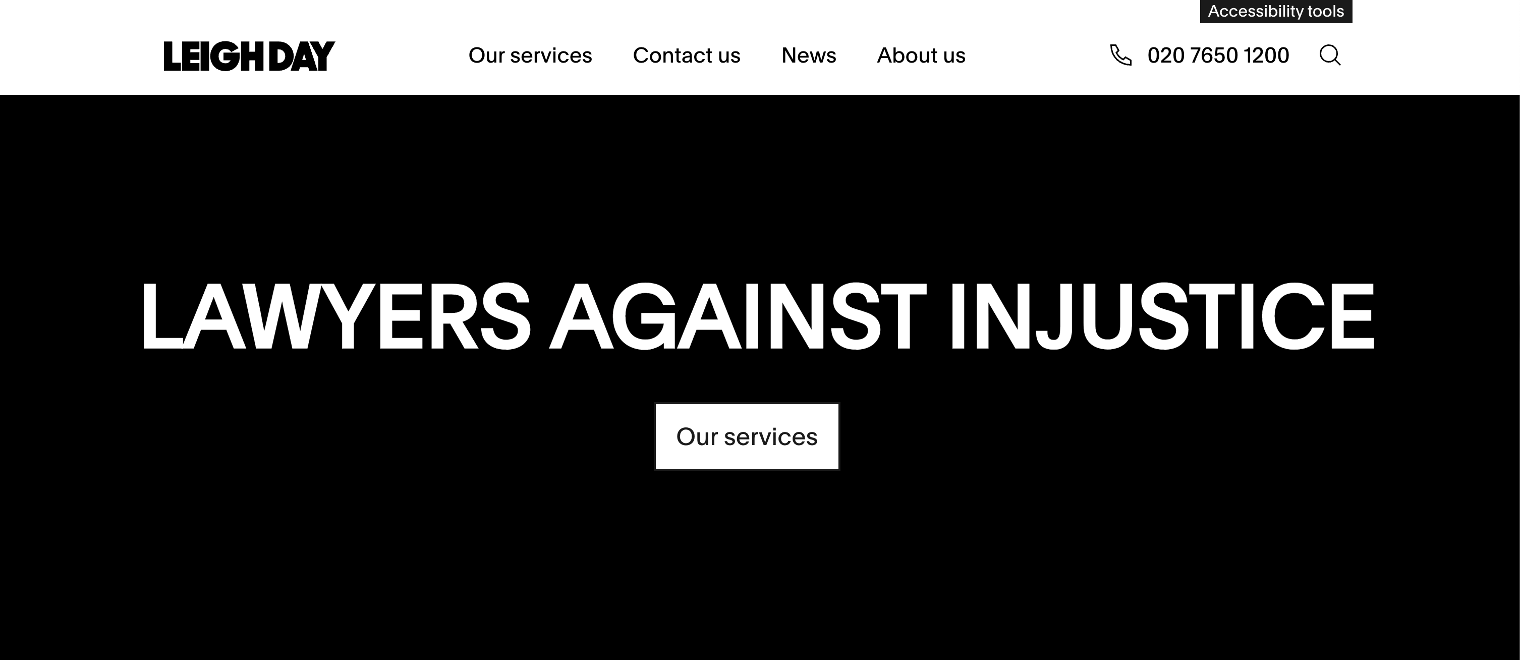 Screenshot home page Leigh Day