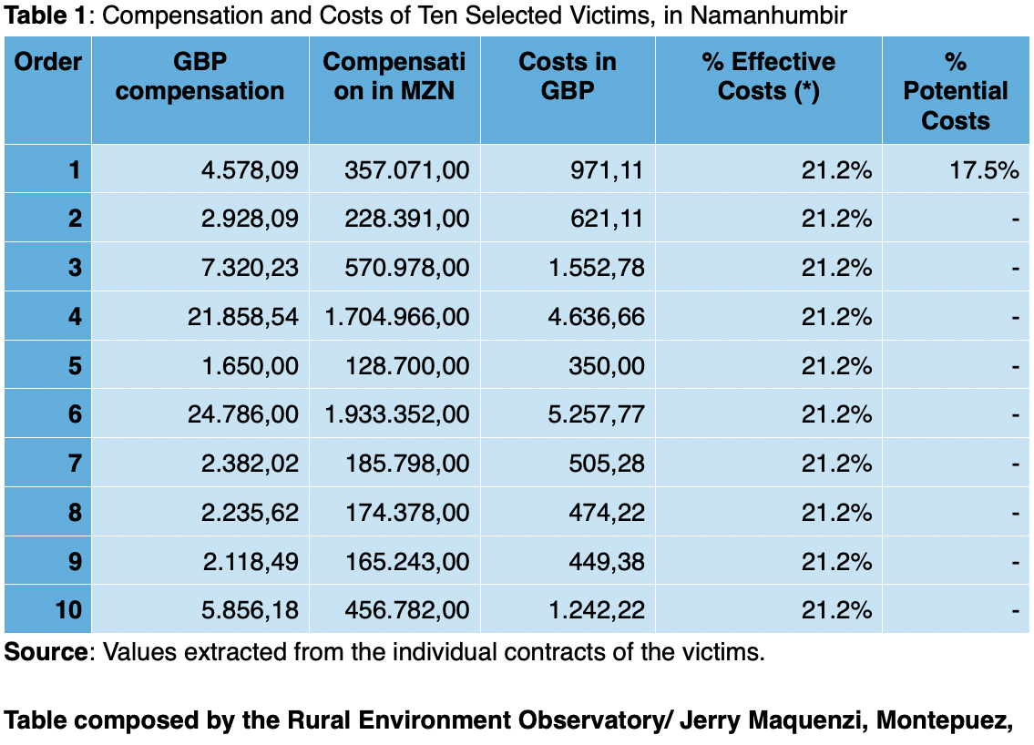The group's complaint may be related to the fact that the contracts stated an amount in local metical currency, the value of which may have declined by the time payment was made. “The amount written in metical is an estimate and will depend on bank charges and the exchange rate (…) I know that we also explained that in person to each of the individuals,” one of the lawyers, Matthew Renshaw, writes in an email following the interview with Leader.