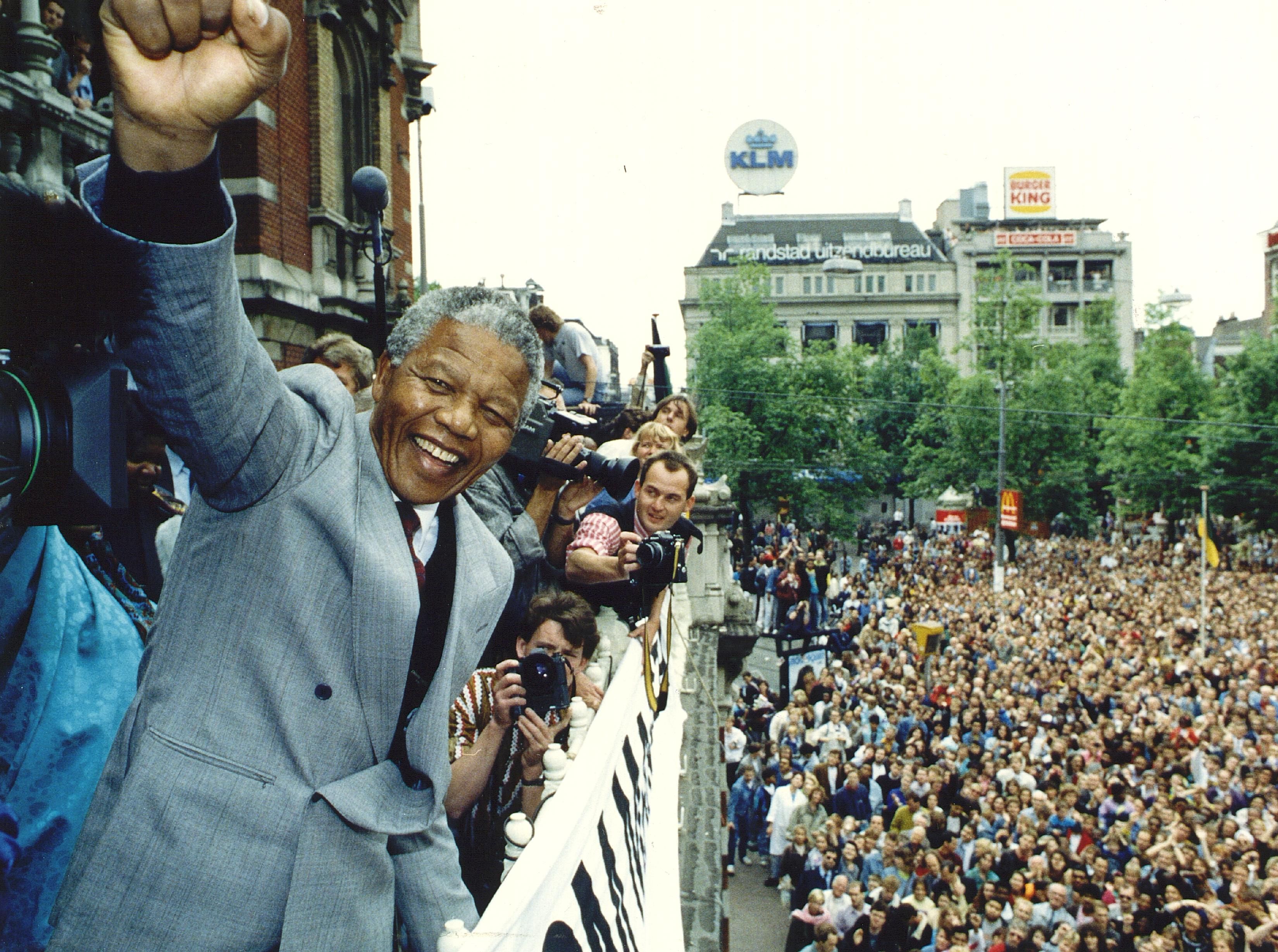 Only 5 months after his release from prison, Nelson Mandela was welcomed by 20.000 people at the Amsterdam Leidseplein. Mandela spoke from the balcony of the theatre. Listen to a live recording of his speech.